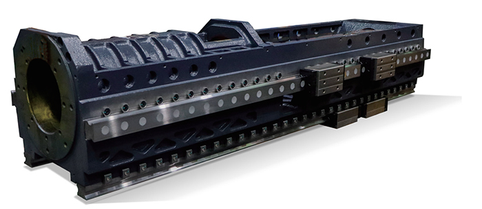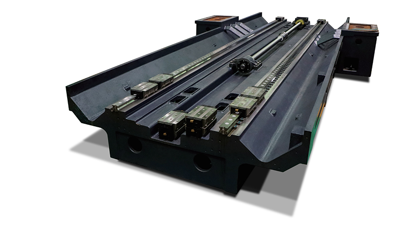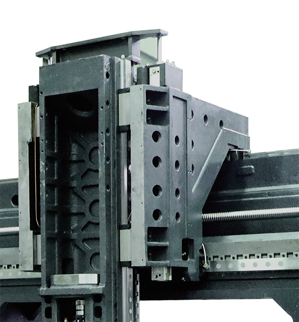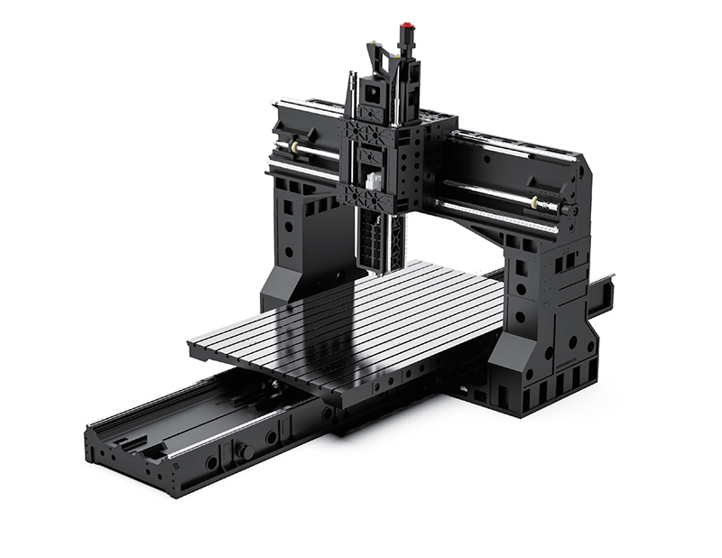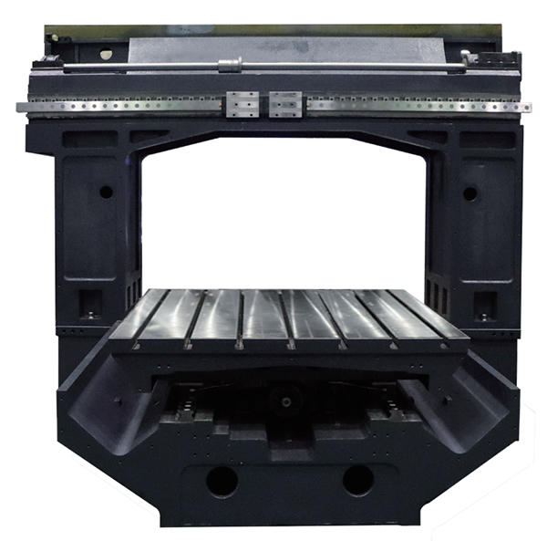 โต๊ะของเครื่องจักรกลแบบโครงสร้างคานยื่น (gantry machining center) โดยพื้นฐานแล้วมีรูปทรงสี่เหลี่ยมผืนผ้า ชิ้นส่วนหล่อขนาดใหญ่และหนัก เช่น โต๊ะ ฐาน เสา คาน และแกนหมุน ทำจากเหล็กหล่อหรือชิ้นส่วนเชื่อม โครงสร้างภายในของชิ้นส่วนหล่อเป็นแบบรังผึ้งที่มีการออกแบบขั้นสูง ซึ่งทั้งหมดได้รับการอบชุบด้วยความร้อนและการอบคืนตัวครั้งที่สองเพื่อขจัดความเครียดภายในที่ตกค้างและทำให้วัสดุมีความเสถียร เพื่อให้มั่นใจถึงความแม่นยำในการขึ้นรูปชิ้นงานและอายุการใช้งานของเครื่องมือกล